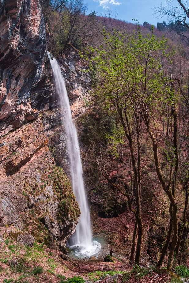 отстоящ на 54м височина. Виждам човек долу в ниското до вира, където се