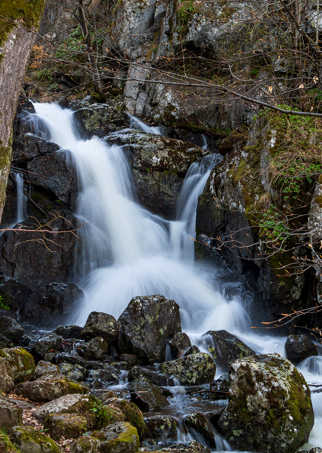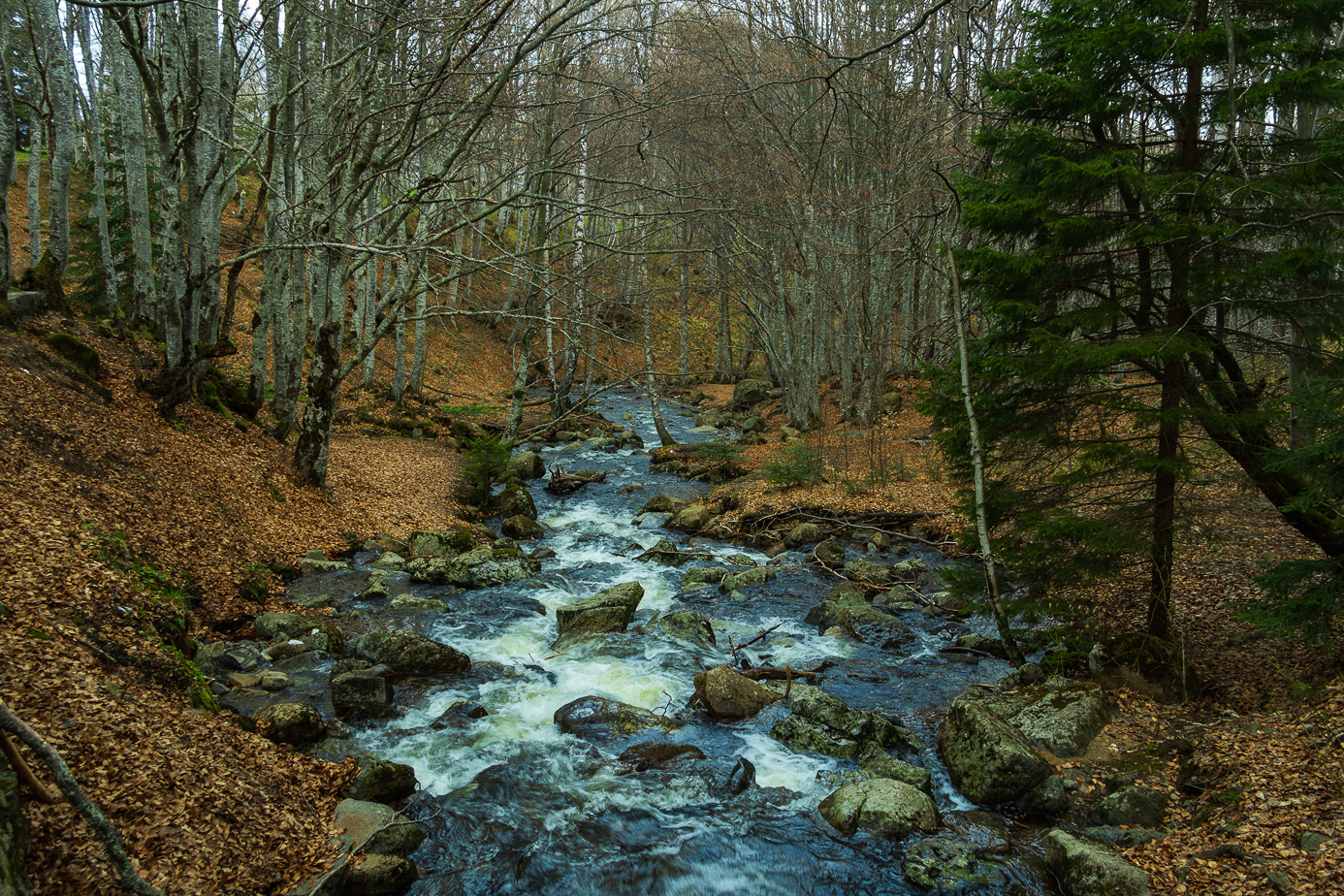 Дърветата се разреждат – успявам да проследя пътя на водата и виждам как по нататък се събират две дерета – това по което вървя и друго – доста по-голямо идващо от изток. Водопада трябва да е там, само че в началото – чак до пътя. Докато си мисля дали да вървя още движение напред привлича погледа ми. Красива кошута е застинала на 50-60 метра на границата на дърветата и поляната на склона срещу мен. Гледаме се за миг, после вдигам апарата и снимам почти в движение, а кошутата с два скока се скрива сред дърветата. Снимките не стават. Забравил съм, че на обектива имам завит ND8 филтър, все пак съм снимал водопад(и) до тоя момент. Докато развивам филтъра изпускам и следващата си плячка. Елен се показва за малко, поглежда ме изпитателно и хуква след женската си. Ето, че планината ми се реваншира за пропуска с водопада. След като излизам на малко по-открито място виждам, че времето пак ще ми прави номера. На юг небето се е навъсило здраво, а вятъра става все по бурен. Тези родопски дерета не са най-подходящото място да те хване водата. Връщам се при коня. Овчарят все още е там, макар че от овцете му няма и следа. Стои човека и ми пази мотора… Става ми гузно и му се извинявам. –Няма проблем – казва – Ти си ми на гости тук! Все пак успявам да му бутна няколко лева в ръцете и се разделяме с взаимни благодарности.