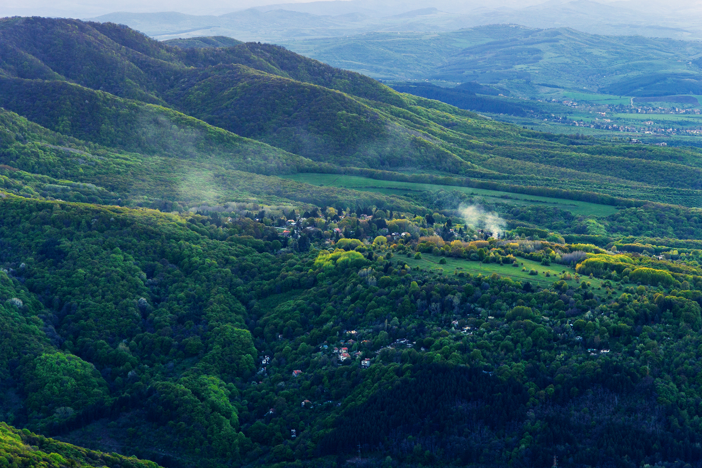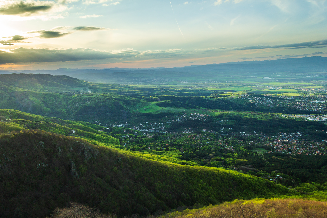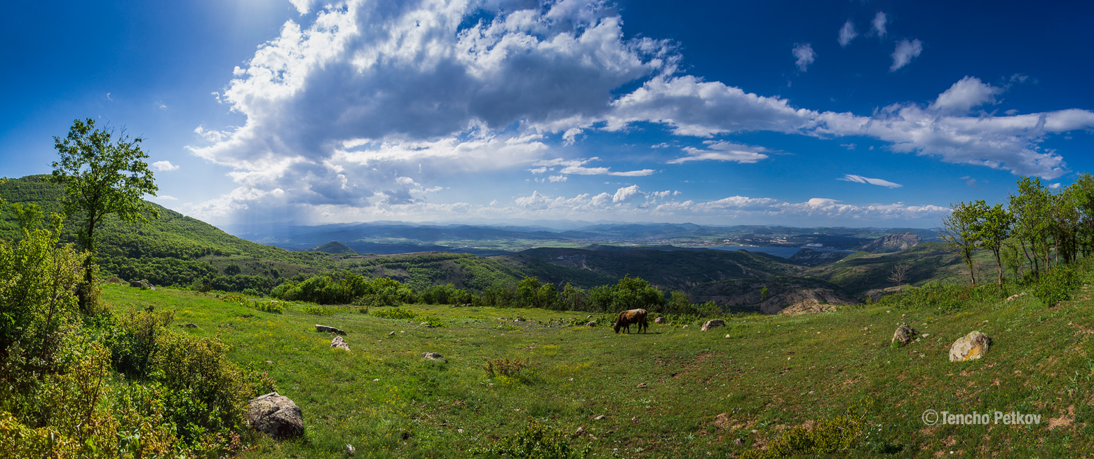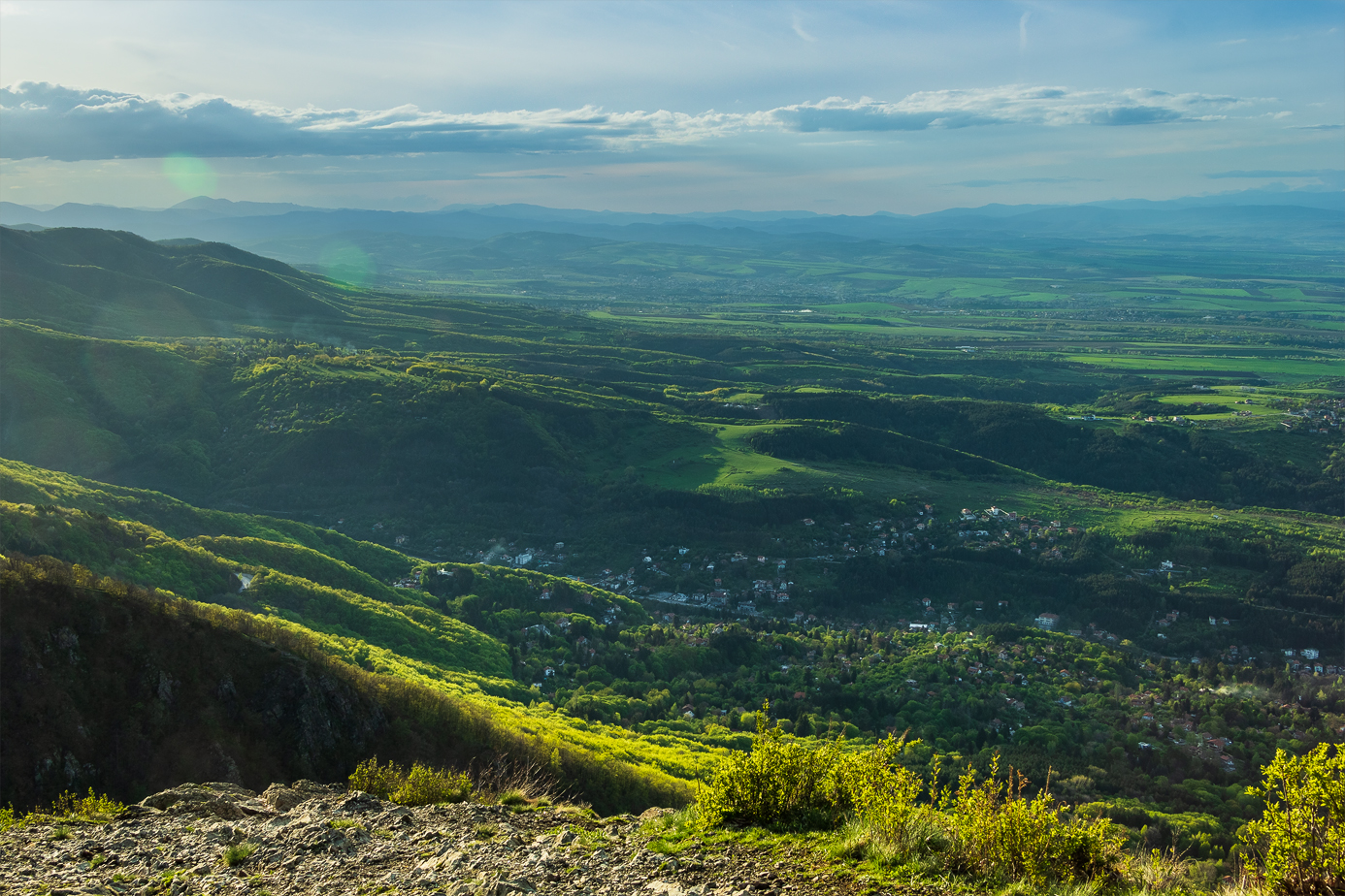 в низината пред мен, а погледа ми стига чак до Стара планина на хоризонта.