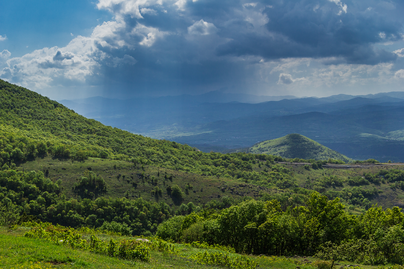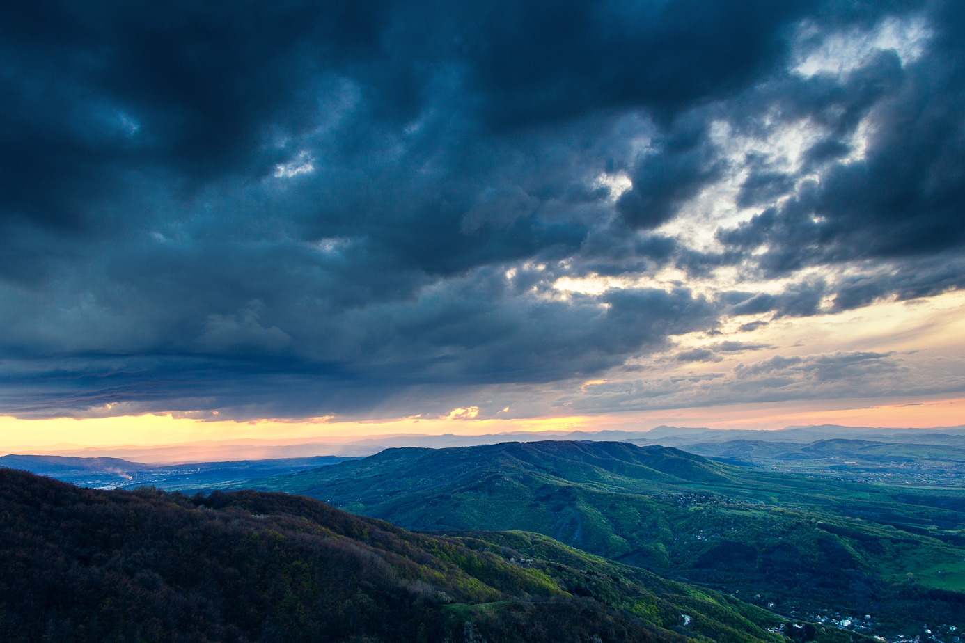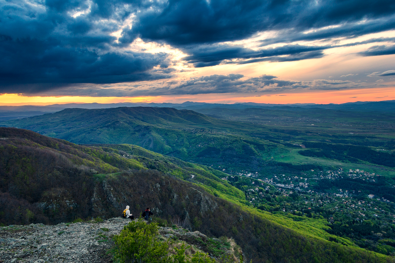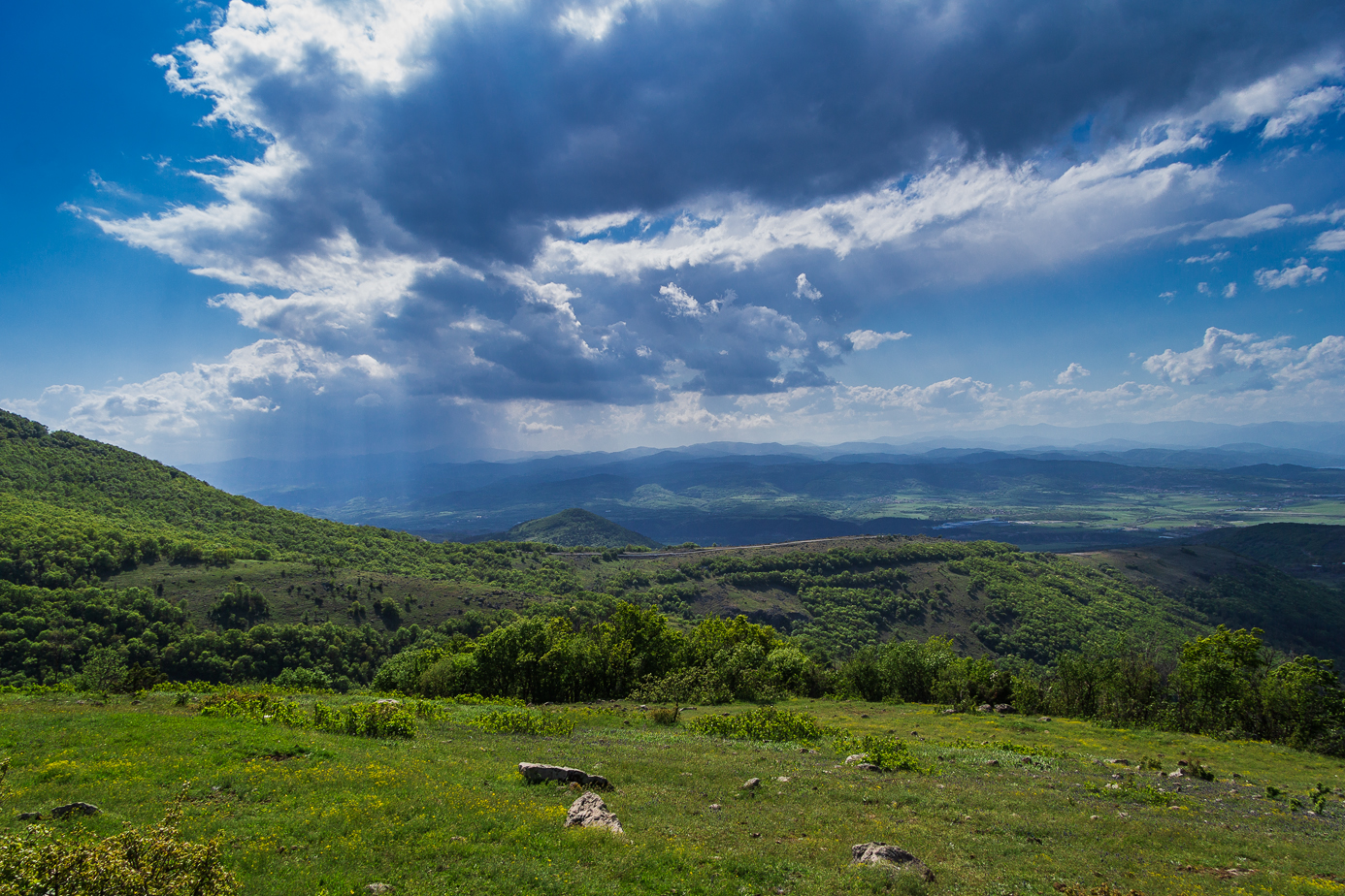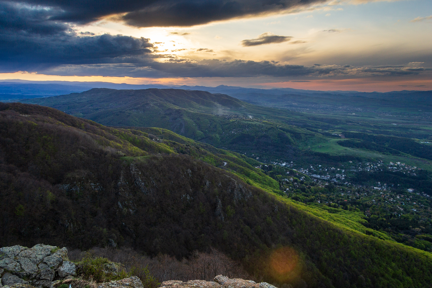 Обратно през ореховите стражи и пак на подбалканския… Вече нямам друга цел, освен благополучното ми пристигане в София. Времето отива към дъжд, дори съм сигурен, че някъде напред вали. Виждам светкавици и от време на време чувам тътен, дори през каската. Скоро стъпвам на доста мокър участък и връщам газта. Температурата пада доста и спирам на първата възможна отбивка за да се пооблека. Потеглям отново и вече влизам в дъжда. Наближавам Пирдоп и осъзнавам, че съм закачил само периферията на бурята, която вече се оттегля към Средна гора. Спирам на бензиностанция в града да долея гориво на коня и да пия вода. През това време на юг трещи здраво и все още превалява леко. Спокоен съм, защото съм почти сигурен, че ми се е разминало – на запад вече просветлява забележимо. Тръгвам пак и усещането е като, че гоня залеза отново, макар че е някъде преди 17 часа. Остава ми да пресека връзката между Средна гора и Стара планина и ще съм в софийското поле. Почвам изкачване по чудни завои, пътя вече е сух. Радвайки се на маршрута пак се сещам за камерата – можеше да снимам тия красиви места докато карам… хубаво ама докато намеря отбивка…