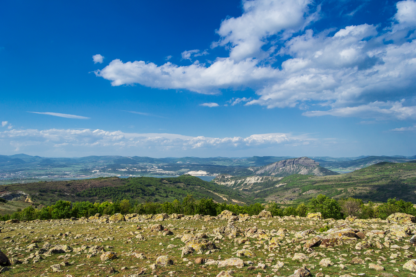 Спирам за кафе пауза и актуализация на плана. След като мотора се поохлажда свалям решетката и проверявам радиатора – изпива малко вода. Значи все пак има нещо дето не му е наред… добре че не съм го „пържил“ на магистралата досега. Врътвам един телефон на родителите ми в Кърджали. Разбирам, че и нататък няма дъжд и ги питам дали искат гости. Има си хас да не щат… Ако коня не я беше глътнал тази вода бих тръгнал на юг през Асеновград и красивите родопски завои. Сега обаче не смея. Не съм минавал по този маршрут поне 10 години, а с мотор пък никога. Решавам, че не е сега момента. До Хасково ще стигна по АМ „Марица“ – далеч по приятна е от „Тракия“ за мото езда. Оттам пък до Кърджали мога да карам и със завързани очи. Точно както и предполагах, още щом излизам на магистралата за Свиленград всичко става по-хубаво. Настилката е по-нова, терена става интересен, пейзажа е по-красив. Рапицовите поля блестят от аромат и ухаят на жълто или обратното. Както и да е, важното е, че пътя спорѝ… Неусетно стигам Хасково. Пресичам го като нож пъпеш (каун му казват тука) и спирам към опашката му, т.е. на изхода за Кърджалистан. Монтирам камерата върху каската, щото тепърва ще става още по-красиво – влизам в родните Родопи! Душата ми пее – от дете мечтая да карам мотор по тези пътища. Малко преди Конуш силно мирише на чубрица, предполагам, че е от сергиите на земеделските производители край пътя. След селото започват завоите и изкачването в планината, така че мислите ми пак се връщат в пътя.