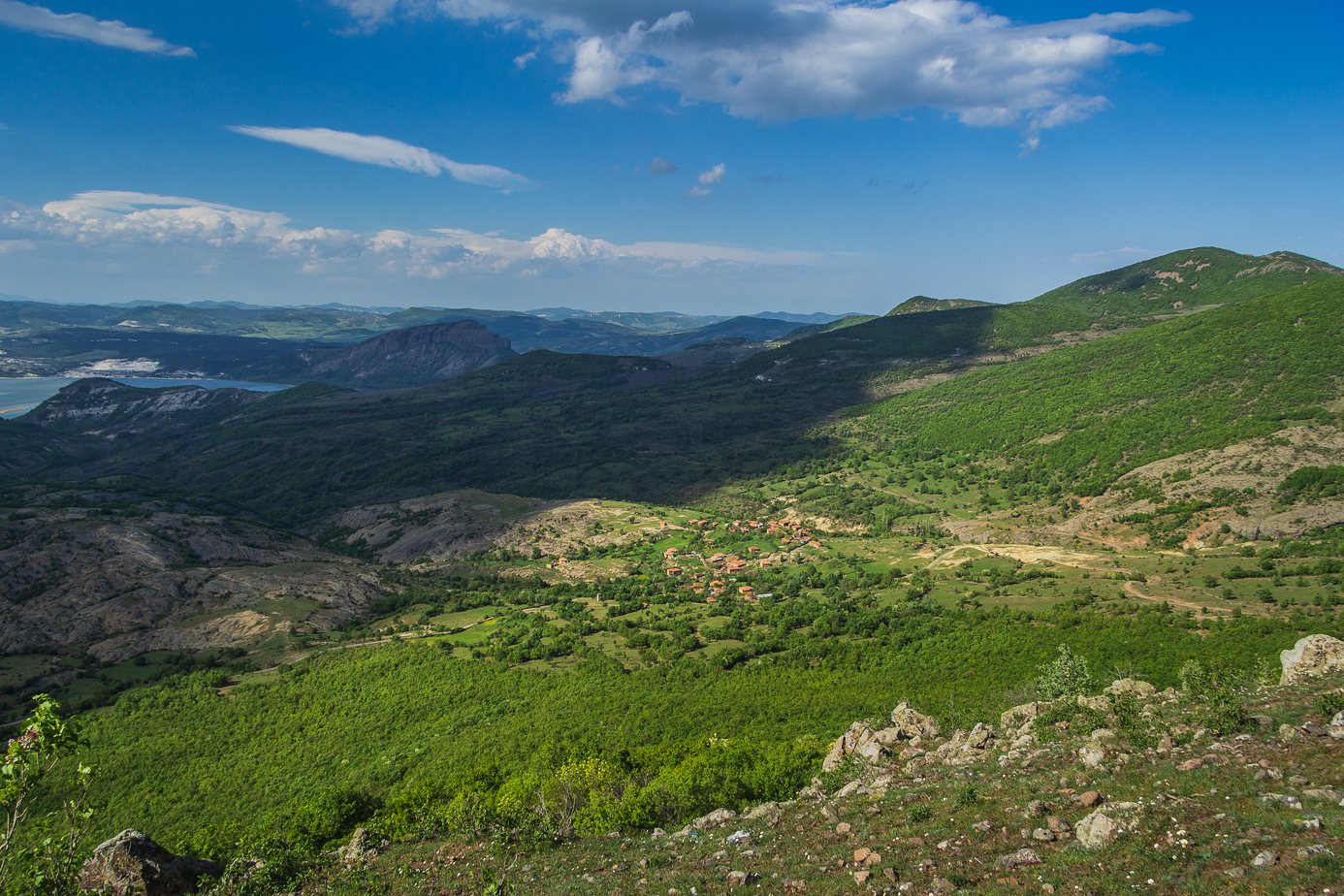 Понеже на мястото където се намирам се кани да вали, смятам да продължа по пътя по който съм дошъл. Да мина през с. Летовник и да се кача до Дамбалъ (или Дамбала) – свято място за мюсюлмани и християни от целия регион. Пътьом хвърлям окото на правилното дере – там където ме чака водопада, който всъщност трябваше да снимам. Ако на връщане времето позволи – ще сляза в ниското и ще си направя снимките. Сега газ нагоре. Непрестанно изкачване с километри. Ушите ми започват да заглъхват. Кога ще се науча да си нося дъвки за такива моменти не знам… Има много участъци от пътя посипани с чакъл – явно това е евтиното и бързо решение на проблема с дупките тук. Внимателното пресичане на камънака е единственото, което бави мотора ми по пътя към върха. На влизане в Летовник зяпам по поляните в ляво от пътя – там където беше „нашата“ къща – изгоряла преди много години след удар от мълния. Хора не виждам, но иначе мястото кипи от живот – стада добитък от всякакъв калибър, ята гъски с малки пухкави гъсета, кучета… Самото село се преминава само за няколко изтупквания на сърцето. В края му самотно стои празното училище, свито и посърнало, потънало в зеленината на превзелите двора дървета, храсти и треви. След още около километър нагоре по стария и посипан с камънак път пресичам откъсната махала съставена предимно от кошари. Животновъдството явно е останало основния поминък за хората тук. Мяркат се едри песове, които с облекчение виждам, че не проявяват интерес към шумното ми преминаване. Малко след това – пълна промяна в трасето. Нов асфалтов път поема още по стръмно нагоре към върха. Тясно е доста – две коли трудно биха се разминали, а на тесните завои ми се струва направо невъзможно – с мотора ги взимам едва пъплещ на първа. На много места обаче са оставени отбивки и разширения – явно така се осъществява разминаването. Възползвам се от една такава и спирам за да снимам долината на Арда и Кърджали от високото.