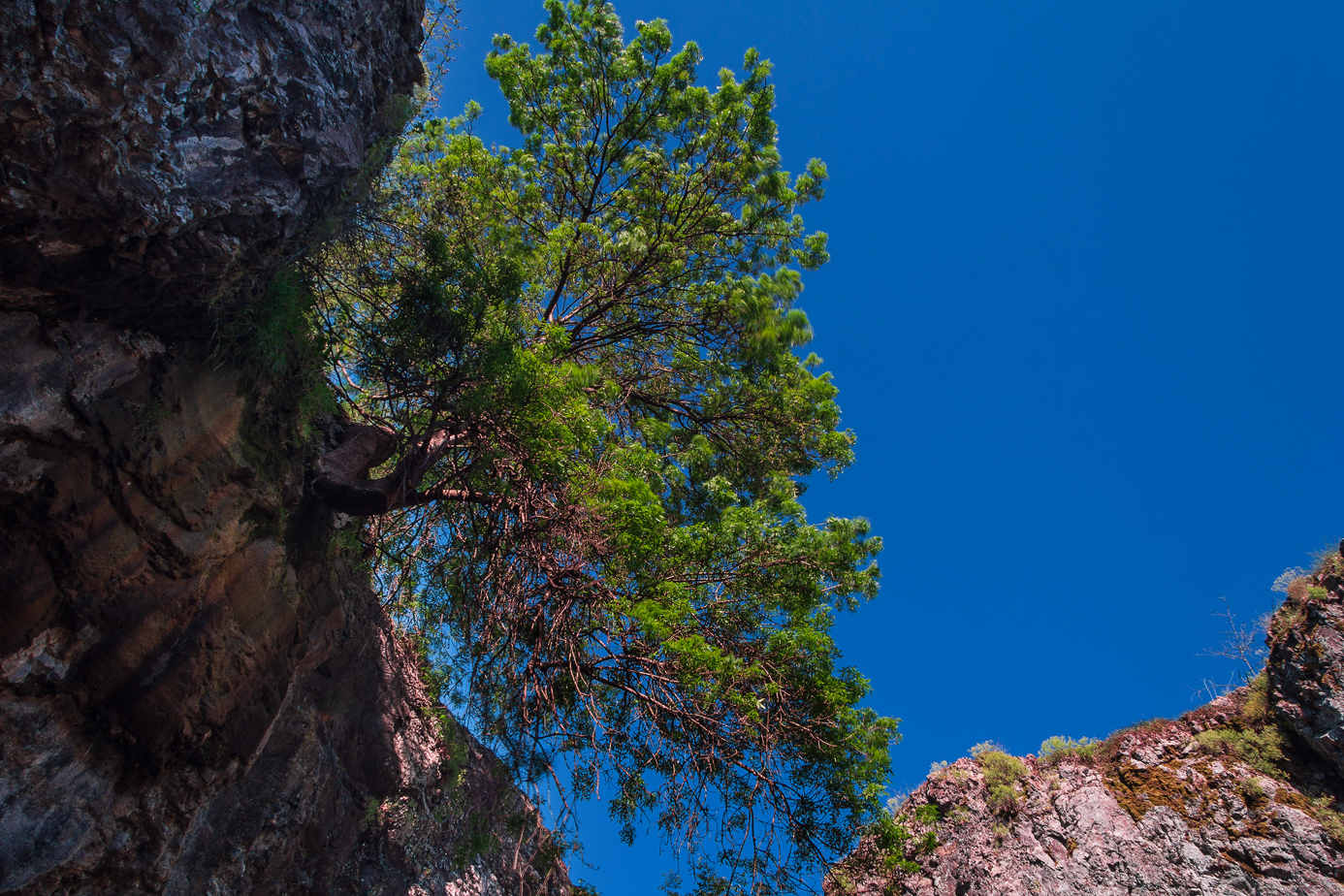 Майка ми ми дава курабии и ябълка в една торба, която мушвам в дисагите и отпрашвам. Мотора ми се струва лек без раницата зад гърба ми и се носи като песен по пътя. Пътуването е кратко, по-малко от 18 км са до крайната точка. Зарязвам коня до двора на джамията и се спускам в ниското. Водата в Токмакладере тече бистра като сълза и прави шарените камъни по дъното още по-красиви. Районът е богат на минерали и ценни за колекционерите камъни. Често се намира червен яспис и ахат. Днес обаче не съм тръгнал да правя кариера. Дошъл съм да снимам красотата на малкия каньон, който е само 100-ина метра нататък. Няма за къде да бързам. Въпреки вятъра ухае на мащерка, а във вира под мен бляскат коремите на едри рибоци. Сядам на скалите да позяпам. Красиви са Родопите във всичките им превъплъщения. Тук например пейзажа е суров – предимно скали и храсталак. Дърветата не са големи – пръснати са на малки групи из долината. Само на 15-20 км., обаче човек може да потъне в сенките на стари дъбове и борове с върхари забити в небето. Това, което ми харесва най-много е изобилието от вода – реки и потоци се вият край всеки път в района. Буквално можеш да пътуваш с часове из родния ми край и синьо-сребристите вени на планината да са ти все под око. Тръгвам нагоре срещу течението и започвам да си набелязвам места за разпъване на статива. В продължение на стотина метра реката тече сред красиво изваяни от водата скали. Преди и след този своеобразен каньон течението се разстила нашироко по камънака. Тук обаче то е впримчено в скалните улеи и с бумтеж се изсипва във вировете. Идвал съм и през лятото, и обикновено има къпещи се и скачащи от скалите младежи. Обикалям по ръба, слизам докъдето мога, правя снимки от всяко местенце, което ми харесва. Прескачам и на другия бряг, защото виждам, че са монтирали метална стълба спускаща се до най-големия вир – този в началото на каньона. Смятам да се възползвам и да сляза до самата вода, макар и да не съм сигурен какви снимки ще направя в тясното пространство долу. В една локва забелязвам мъничко змийче – 30на сантиметрово. Удрям му няколко близки портрета и го оставям да си довърши SPA процедурите. Слизам по стълбата и се озовавам на малък ръб над водата. Едва успявам да наглася някак статива, но в крайна сметка излизам обратно горе с поне един кадър, който си струва. Връщайки се към мотора снимам от още няколко места скачайки като коза надолу и нагоре по скалите. Виждам и една далеч по-голяма змия, която категорично ми отказва фото-услугите, мушва се зад храстите и сякаш потъва вдън земя. Въртя се известно време около мястото, но така и не мога да ѝ открия дупката. Освен достатъчно кадри съм поел и обилна доза слънце по задапаратното си устройство. Спирам за кратък отдих под дебелата сянка на най-голямото дърво в района.
