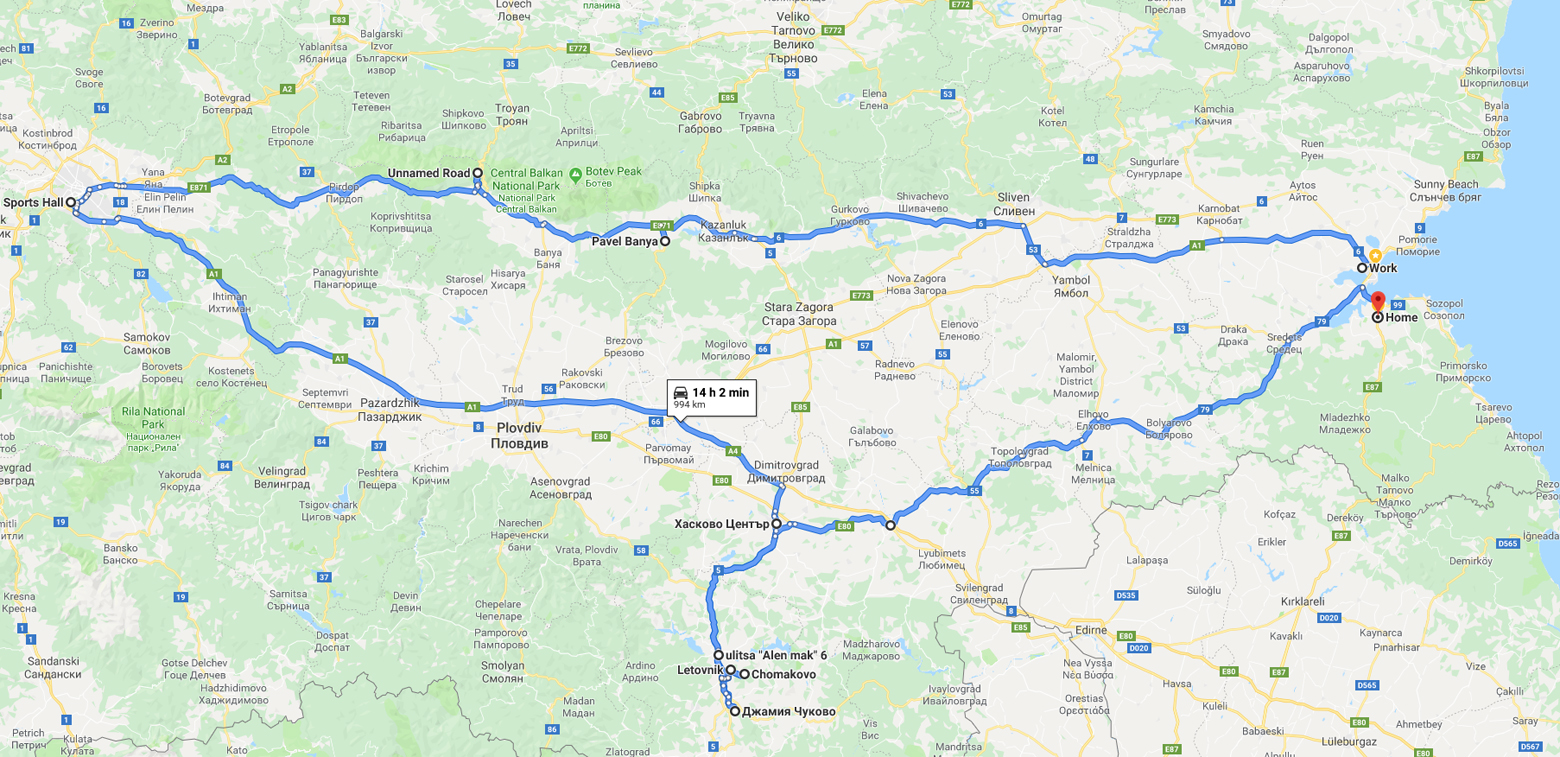 решил маршрута: Кърджали – Хасково – Харманли – Тополовград – Елхово – Средец –